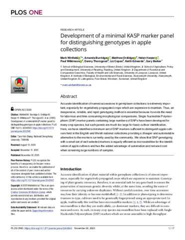 Development of a minimal KASP marker panel for distinguishing genotypes in apple collections.