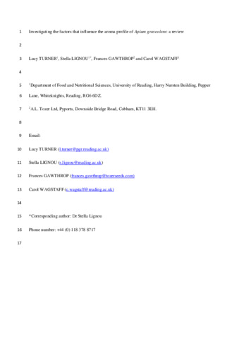 Investigating the factors that influence the aroma profile of Apium graveolens: a review.