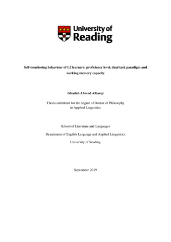 Albarqi, G. A. (2020) Self-monitoring behaviour of L2 learners: proficiency level, dual task paradigm and working memory capacity. PhD thesis, University of Reading. doi: 10.48683/1926.00094604