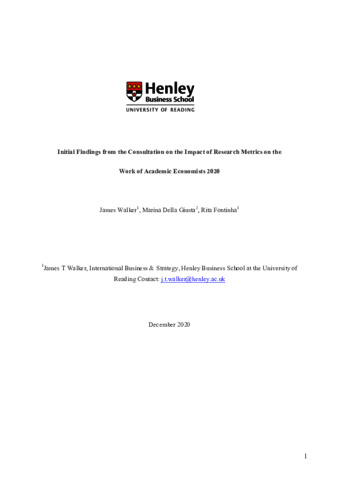 Initial findings from the consultation on the impact of research metrics on the work of academic economists 2020.