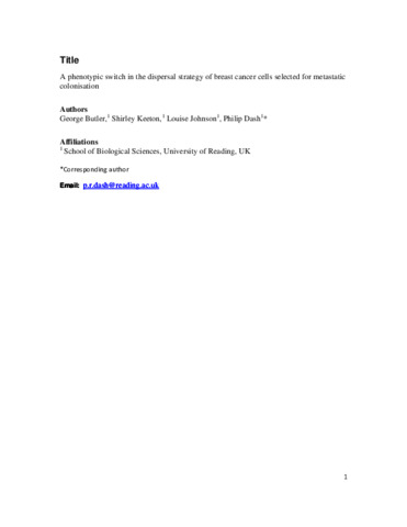 A phenotypic switch in the dispersal strategy of breast cancer cells selected for metastatic colonization.