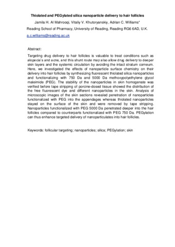 Thiolated and PEGylated silica nanoparticle delivery to hair follicles.