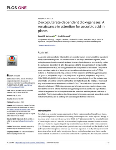 41.DeTullio MC.Is ascorbic acid a key signaling molecule integrating the activities of 2-oxoglutarate-dependentd ioxygenases? Shifting the paradigm.Environ Exp Bot. 2020;178:104173.