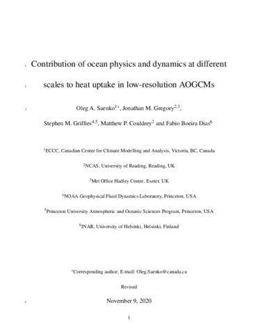 Contribution of ocean physics and dynamics at different scales to heat uptake in low-resolution AOGCMs.