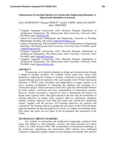 Enhancement of learning objectives in construction engineering education: a step towards simulation assessment.