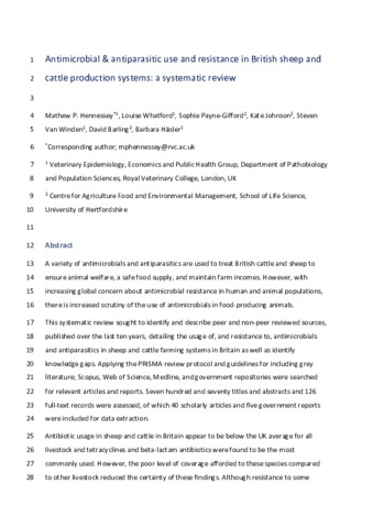 Antimicrobial & antiparasitic use and resistance in British sheep and cattle: a systematic review.