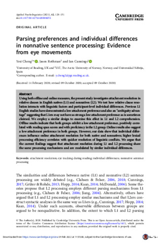 Parsing preferences and individual differences in non-native sentence processing: evidence from eye-movements.