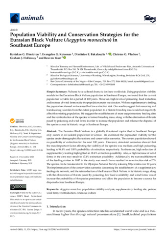 Population viability and conservation strategies for the Eurasian Black Vulture (Aegypius monachus) in Southeast Europe.