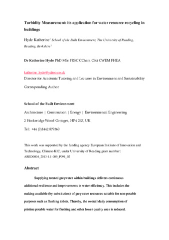 Hyde, K. (2021) Turbidity measurement: its application for water resource recycling in buildings. Process Safety and Environmental Protection, 146. pp. 629-638. ISSN 0957-5820 doi: 10.1016/j.psep.2020.11.019