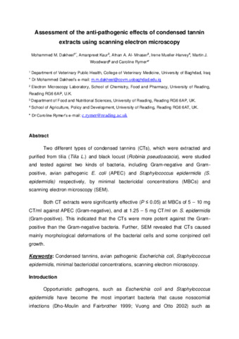 Dakheel, M. M. ORCID: https://orcid.org/0000-0002-1938-8098, Kaur, A., Al-Mnaser, A. A., Mueller-Harvey, I., Woodward, M. J. and Rymer, C.