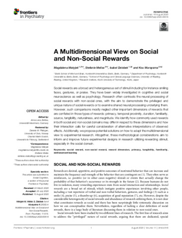 Matyjek, M., Meliss, S., Dziobek, I. and Murayama, K. (2020) A multidimensional view on social and non-social rewards. Frontiers in Psychiatry, 11. 818. ISSN 1664-0640 doi: 10.3389/fpsyt.2020.00818