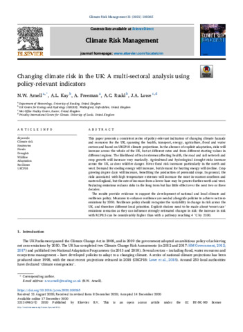 Changing climate risk in the UK: a multi-sectoral analysis using policy-relevant indicators.