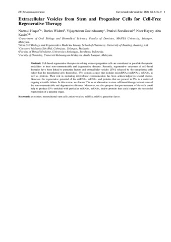 Cell-based regenerative therapies involving stem or progenitor cells are considered as possible therapeutic modalities to treat non-communicable and degenerative diseases. Recently, regenerative outcomes of cell-based therapies have been linked to paracrine factors and extracellular vesicles [EVs] released by the transplanted cells rather than the transplanted cells themselves. EVs contain a cargo that includes microRNAs [miRNAs], mRNAs, as well as proteins. Their role in mediating intercellular communication has been acknowledged in several studies. However, the regenerative potential of the miRNAs, mRNAs, and proteins that are present in EVs is a matter of ongoing scientific debate. In this review, we discuss EVs as an alternative to stem cell-based therapy to treat some of the non-communicable and degenerative diseases. Moreover, we also propose that pre-treatment of the cells could help to produce EVs enriched with particular miRNAs, mRNAs, and/or proteins that could support the successful regeneration of a targeted organ.