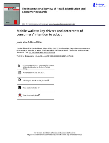 Mombeuil, C. (2020), "An exploratory investigation of factors affecting and best predicting the renewed adoption of mobile wallets", Journal of Retailing and Consumer Services, Vol. 55, https://doi.org/10.1016/j.jretconser.2020.102127.
