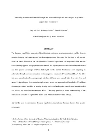 Unraveling asset recombination through the lens of firm-specific advantages: a dynamic capabilities perspective.