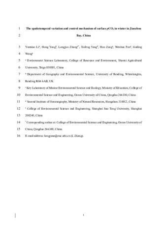 The spatiotemporal variation and control mechanism of surface pCO2 in winter in Jiaozhou Bay, China.