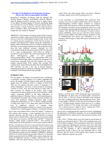 Hamilton, J. F. orcid id iconORCID: https://orcid.org/0000-0003-0975-4311, Bryant, D. J., Edwards, P. M., Ouyang, B. orcid id iconORCID: https://orcid.org/0000-0001-8663-1935, Bannan, T. J. orcid id iconORCID: https://orcid.org/0000-0002-1760-6522, Mehra, A., Mayhew, A. W. orcid id iconORCID: https://orcid.org/0000-0001-5277-1331, Hopkins, J. R., Dunmore, R. E., Squires, F. A., Lee, J. D., Newland, M. J., Worrall, S. D. orcid id iconORCID: https://orcid.org/0000-0003-1969-3671, Bacak, A., Coe, H., Percival, C. orcid id iconORCID: https://orcid.org/0000-0003-2525-160X, Whalley, L. K., Heard, D. E. orcid id iconORCID: https://orcid.org/0000-0002-0357-6238, Slater, E. J., Jones, R. L., Cui, T., Surratt, J. D. orcid id iconORCID: https://orcid.org/0000-0002-6833-1450, Reeves, C. E., Mills, G. P., Grimmond, S. orcid id iconORCID: https://orcid.org/0000-0002-3166-9415, Sun, Y., Xu, W., Shi, Z. orcid id iconORCID: https://orcid.org/0000-0002-7157-543X and Rickard, A. R. (2021) Key role of NO3 radicals in the production of isoprene nitrates and nitrooxyorganosulfates in Beijing. Environmental Science and Technology, 55 (2). pp. 842-853. ISSN 1520-5851 doi: 10.1021/acs.est.0c05689