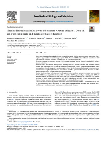 [28] D. Vara, A. Tarafdar, M. Celikag, D. Patinha, C.E. Gulacsy, E. Hounslea, Z. Warren, B. Ferreira, M.P. Koeners, L. Caggiano, NADPH oxidase 1 is a novel pharmacological target for the development of an antiplatelet drug without bleeding side effects, The FASEB Journal (2020).