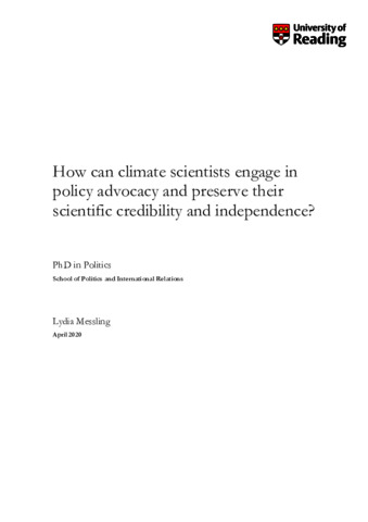 Messling, L. (2020) How can climate scientists engage in policy advocacy and preserve their scientific credibility and independence? PhD thesis, University of Reading. doi: 10.48683/1926.00096012