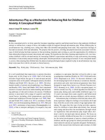 Adventurous play as a mechanism for reducing risk for childhood anxiety: a conceptual model.