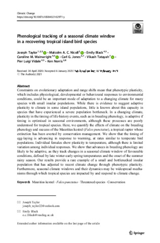 Phenological tracking of a seasonal climate window in a recovering tropical island bird species.