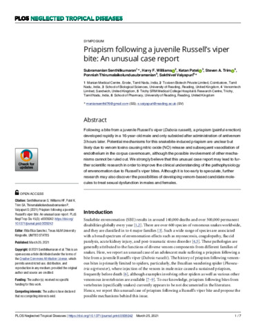 Priapism following a juvenile Russell’s viper bite: an unusual case report.
