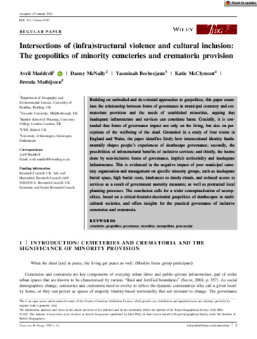 Intersections of (infra)structural violence and cultural inclusion: the geopolitics of minority cemeteries and crematoria provision.