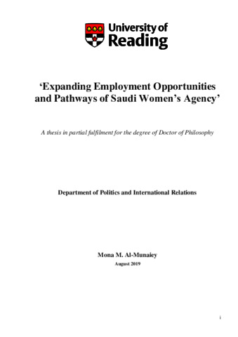 Al-Munaiey, M. (2020) Expanding employment opportunities and pathways of Saudi women’s agency. PhD thesis, University of Reading. doi: 10.48683/1926.00096366