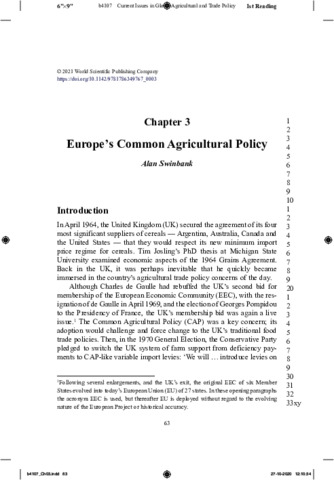 After a brief history of the common agricultural policy (CAP), this chapter asks whether the reform process begun in the 1990s has been completed and whether or not there has been a paradigm change. It then poses the question: what are direct payments for? Pillar 2 is then briefly discussed. Finally two particular challenges for the post-2020 CAP are noted: that arising from the UK’s exit from the EU, and the need for European farmers to adapt to climate change, whilst helping to mitigate its effects through carbon sequestration and a reduction in greenhouse gas (GHG) emissions.