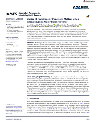 Choice of pedotransfer functions matters when simulating soil water balance fluxes.