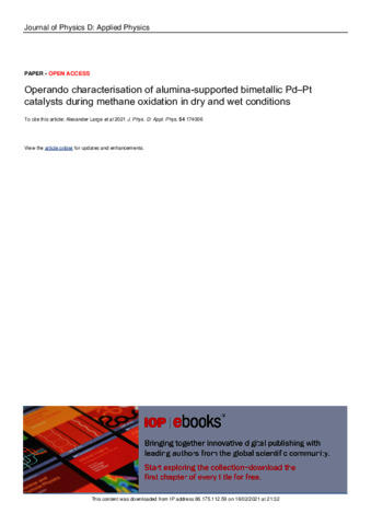 Operando characterisation of alumina-supported bimetallic Pd–Pt catalysts during methane oxidation in dry and wet conditions.