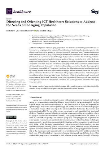 Directing and orienting ICT healthcare solutions to address the needs of the aging population.