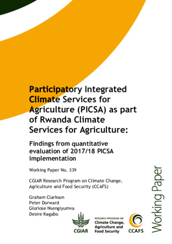 Participatory integrated Climate Services for Agriculture (PICSA) is being implemented in multiple districts across Rwanda as part of the Rwanda Climate Services for Agriculture project. This report presents findings from the evaluation of PICSA implementation across ten districts in the third year of the project. PICSA training of Farmer Promoters took place in late 2017 ahead of implementation with farmer groups. This document reports on a quantitative survey of 502 randomly selected trained farmers. The quantitative evaluation took place in May 2018 after the season had finished and respondents had been able to harvest. Results from the quantitative survey show that most of the farmers were trained on the PICSA elements that are implemented ‘long before the season’. In addition, almost all respondents were trained in the seasonal forecast and two thirds received short term forecasts during the season. 98% of farmers had made changes in their farming or other livelihood activities as a result of PICSA training. More farmers made changes in crops (96% of respondents) than livestock (29%) and other livelihoods (6%). Men made an average of 2.4 changes per farmer and women 2.1. The most popular types of changes made in crops were changing the management of land (50%), changing the amount and / or type of inputs used (35%); changing planting date (27%); growing a new variety of a crop they already grow (25%); and growing a new crop (20%). The most popular change in livestock enterprises were starting a new enterprise (15%), followed by changing the management of a livestock enterprise (11%) and increasing the scale of a livestock enterprise (6%). Regarding other livelihoods 4% of respondents had started a new enterprise, 1% had increased scale and 1% had changed management of livelihood enterprises. Regarding the effects of the changes farmers had made as a result of the PICSA training, 92% of farmers reported that the decisions they had taken had improved their household food ii security. 86% reported that they had improved household income, 81% that they had been better able to provide for family healthcare and 74% that they had found it easier to pay their children’s school fees. Respondents reported that as a result of the PICSA training and the effects of the changes they had made that they are more confident in planning and decision making (93%), better able to cope with bad years caused by the weather (76%) and had improved their social standing within their households (92%) and within their wider community (91%). PICSA is an integrated approach that enables individual farmers and households to study their own resources and farming systems, the climatology of their area, identify, evaluate and plan appropriate options to cope with and adapt to climate variability and change. The results of this study show that this integrated approach has continued to stimulate innovation and change in farming communities as it has been scaled across Rwanda.