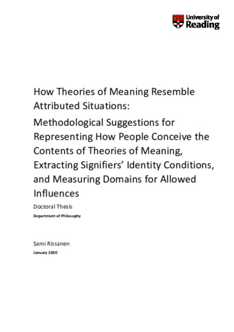 Rissanen, S. (2020) How theories of meaning resemble attributed situations: methodological suggestions for representing how people conceive the contents of theories of meaning, extracting signifiers’ identity conditions, and measuring domains for allowed influences. PhD thesis, University of Reading. doi: 10.48683/1926.00096821
