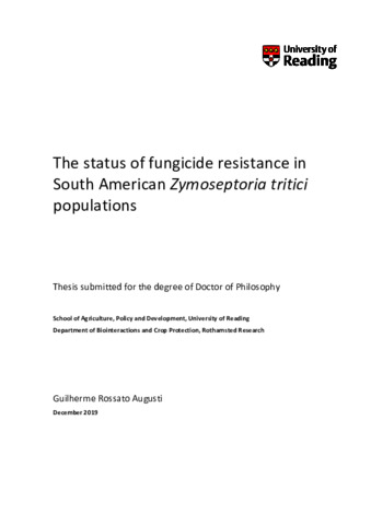 Rossato Augusti, G. (2020) The status of fungicide resistance in South American Zymoseptoria tritici populations. PhD thesis, University of Reading. doi: 10.48683/1926.00096825