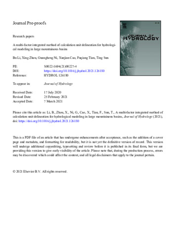 A multi-factor integrated method of calculation unit delineation for hydrological modeling in large mountainous basins.
