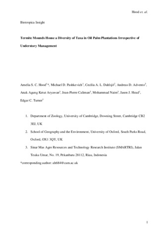 Termite mounds house a diversity of taxa in oil palm plantations irrespective of understory management