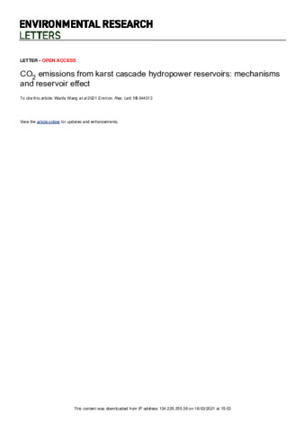CO2 emissions from karst cascade hydropower reservoirs: mechanisms and reservoir effect.