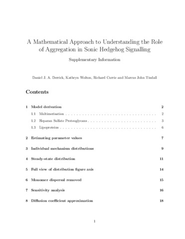 Derrick, D. J. A., Wolton, K., Currie, R. A. and Tindall, M. J. (2021) A mathematical model of the role of aggregation in sonic hedgehog signalling. PLoS computational biology, 17 (2). e1008562. ISSN 1553-7358 doi: 10.1371/journal.pcbi.1008562
