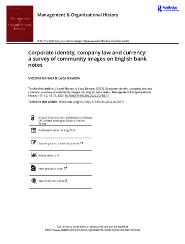 Barnes, Victoria, and Lucy Newton. 2017. ‘Constructing Corporate Identity before the Corporation: Fashioning the Face of the First English Joint Stock Banking Companies through Portraiture’. Enterprise & Society 18 (3): 678–720. https://doi.org/10.1017/eso.2016.90.