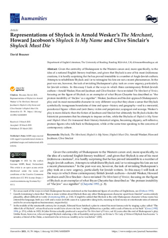 Representations of Shylock in Arnold Wesker’s The Merchant, Howard Jacobson’s Shylock is My Name and Clive Sinclair’s Shylock Must Die.