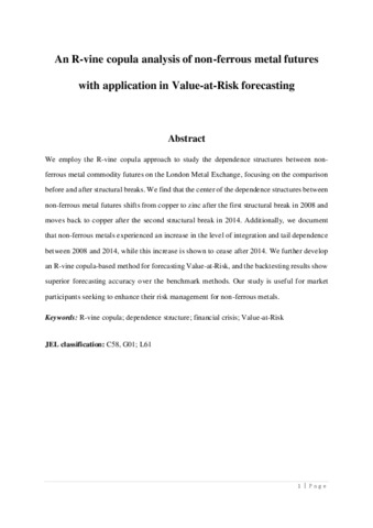 An R-vine copula analysis of non-ferrous metal futures with application in Value-at-Risk forecasting.