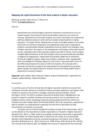 Wong, B. orcid id iconORCID: https://orcid.org/0000-0002-7310-6418, DeWitt, J. and Chiu, Y.-L. T. (2023) Mapping the eight dimensions of the ideal student in higher education. Educational Review, 75 (2). pp. 153-171. ISSN 1465-3397 doi: 10.1080/00131911.2021.1909538