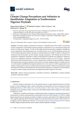 Tambo, Justice Akpene, and Tahirou Abdoulaye. 2013. Smallholder farmers’ perceptions of and adaptations to climate change in the Nigerian savanna. Regional Environmental Change 13: 375–88. [Google Scholar] [CrossRef]