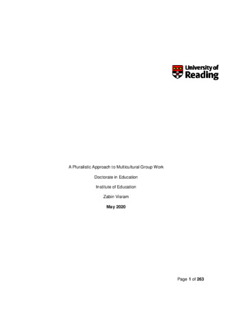 Visram, Z. (2020) A pluralistic approach to multicultural group work. EdD thesis, University of Reading. doi: 10.48683/1926.00097048