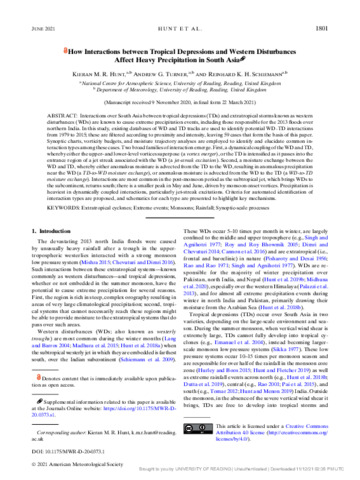How interactions between tropical depressions and western disturbances affect heavy precipitation in South Asia.