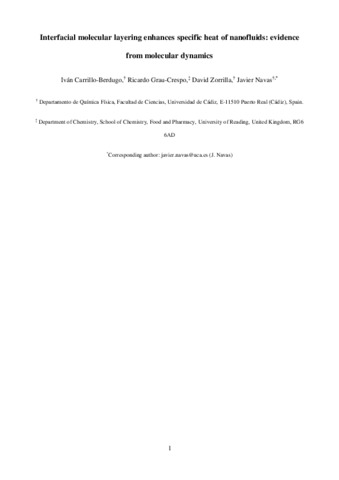 Interfacial molecular layering enhances specific heat of nanofluids: evidence from molecular dynamics.