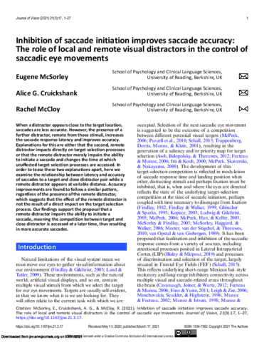 Inhibition of saccade initiation improves saccade accuracy: The role of local and remote visual distractors in the control of saccadic eye movements.