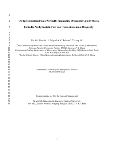 Xu, X., J. Song, Y. Wang, and M. Xue, 2017a: Quantifying the effect of horizontal propagation of three-dimensional mountain waves on the wave momentum flux using Gaussian Beam Approximation. J. Atmos. Sci., 74, 1783–1798.