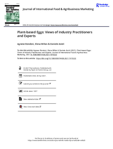 Rondoni, A., Millan, E. and Asioli, D. (2021) 'Consumers' preferences for intrinsic and extrinsic product attributes of plant-based eggs: an exploratory study in the United Kingdom and Italy', British Food Journal. Emerald Publishing Limited. https://doi.org/10.1108/BFJ-11-2020-1054.